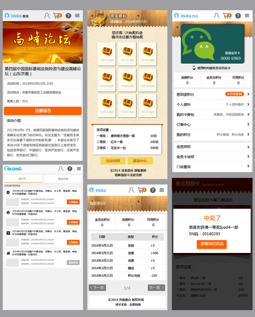 優(yōu)惠券、奪寶騎兵、微會員是白菜網(wǎng)絡(luò)自主研發(fā)的基于微信一系列營銷活動,用戶可方便的在后臺自主發(fā)起營銷活動,并對活動數(shù)據(jù)進行監(jiān)管查詢操作