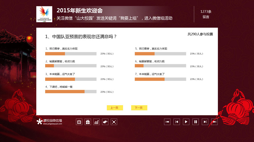 用戶(hù)可自主更換微信上墻活動(dòng)的banner,設(shè)置上墻內(nèi)容是否需要審核、投影內(nèi)容是否自動(dòng)刷新、手動(dòng)刷新、暫停刷新等操作。