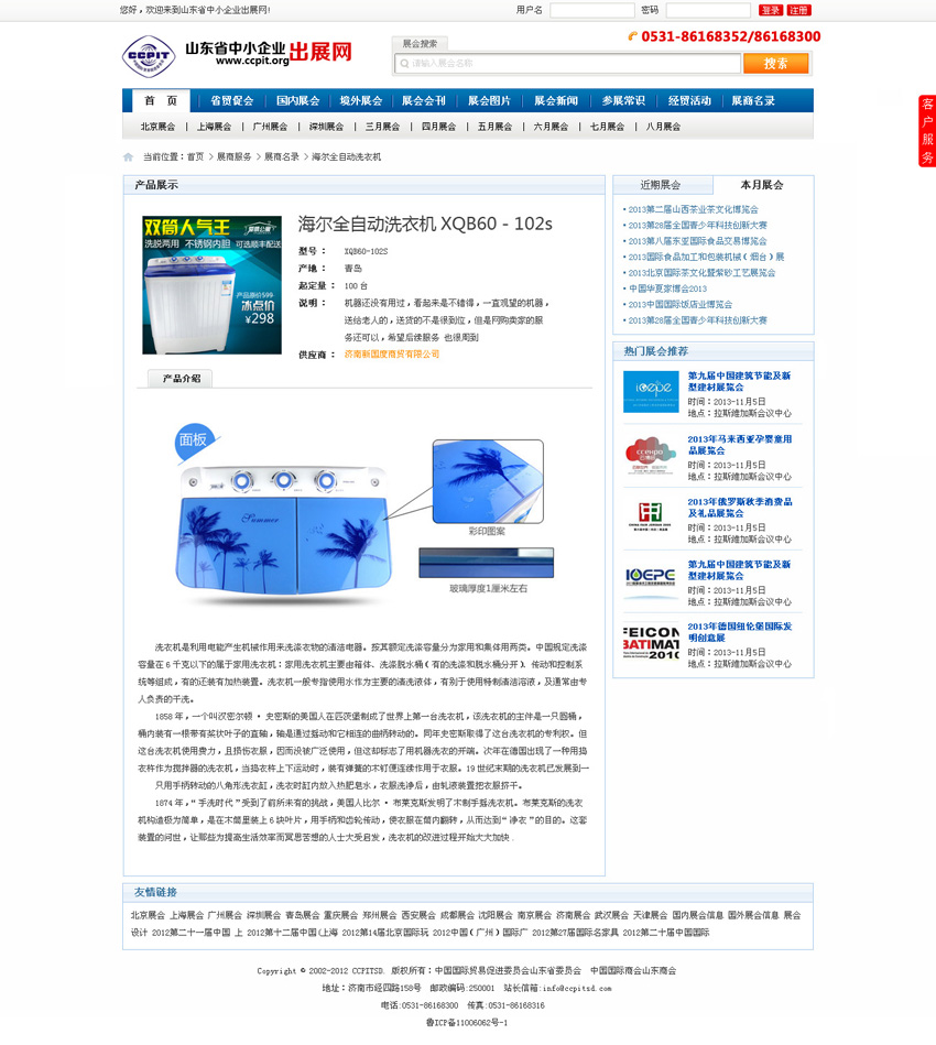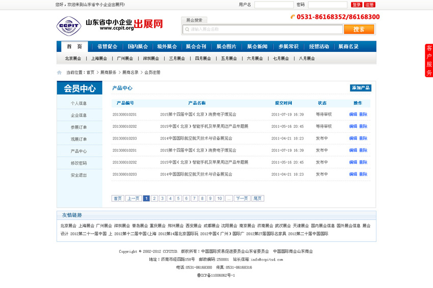 山東省中小企業(yè)出展網(wǎng)是白菜網(wǎng)絡(luò)受山東省貿(mào)促會(huì)委托,定制開(kāi)發(fā)的一套展會(huì)管理平臺(tái)。