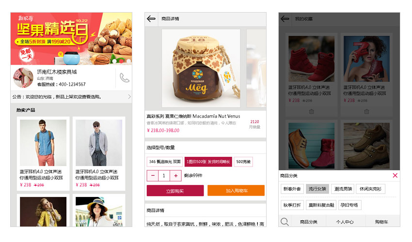 移動(dòng)端商城系統(tǒng),是一套白菜網(wǎng)絡(luò)根據(jù)客戶要求定制開(kāi)發(fā)的一套手機(jī)端商城系統(tǒng),系統(tǒng)還實(shí)現(xiàn)了與微信公眾號(hào)的對(duì)接,可直接在微信中進(jìn)行購(gòu)買和支付等相關(guān)操作。