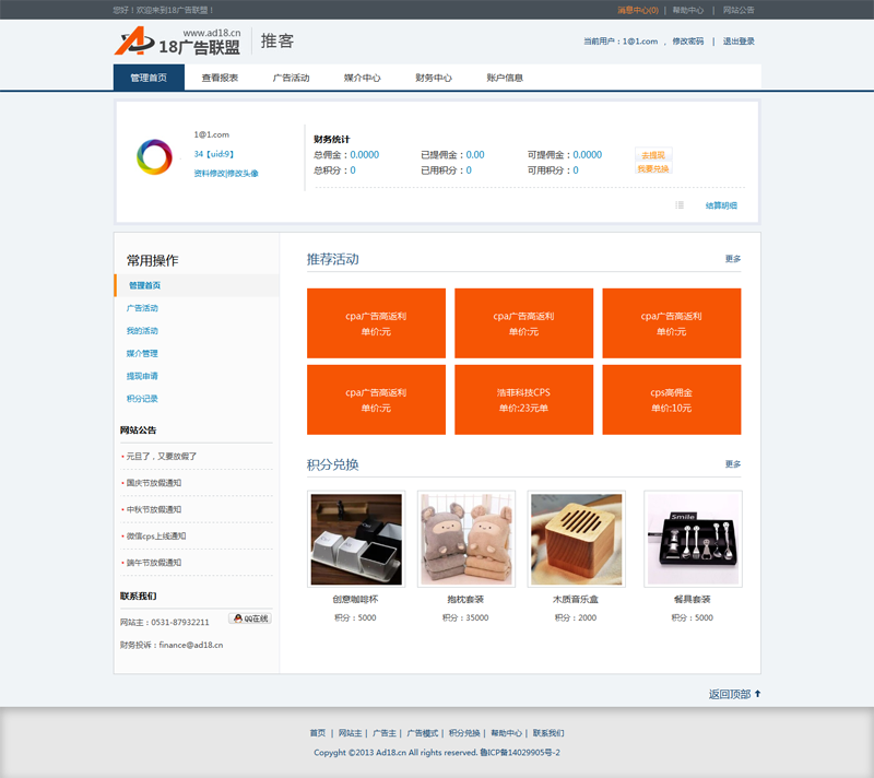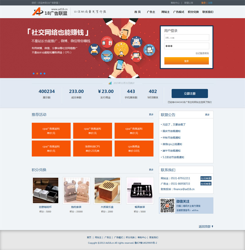 ad18廣告聯(lián)盟 將以良好的信用,期待與各個(gè)聯(lián)盟會(huì)員一起成長、發(fā)展、壯大!