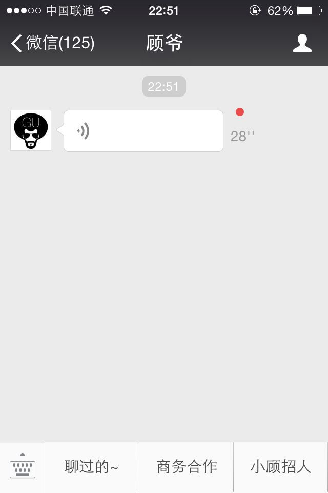 “你好,我是小顧。他們說聲音回復顯得更有誠意,所以我就錄了段話。首先感謝你的關注,不知道第一次聽到我的聲音會不會掉粉啊。我的編輯說我的聲音聽上去像溫州制鞋廠的老板,哎,制鞋就制鞋吧,只要是老板就行。再次感謝你的關注啊,謝謝你關注顧老板,再見。”