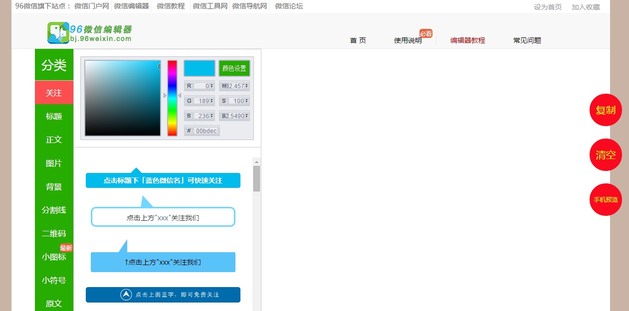 對于微信公眾號推送的內(nèi)容,要認(rèn)真推敲,發(fā)布有對用戶有價值或者感興趣的信息,最好是獨創(chuàng)和原創(chuàng),或者幽默和搞笑,或者有自己獨到的見解。亦或者是可以引起用戶共鳴,讓用戶主動轉(zhuǎn)發(fā)的內(nèi)容。比如您是做蜂蜜(微信號:xuelingmigu)產(chǎn)品的,在公眾號除了發(fā)布自身產(chǎn)品相關(guān)的內(nèi)容,還可以發(fā)一些關(guān)于蜂蜜的鑒別、食用等方面的內(nèi)容,讓用戶轉(zhuǎn)發(fā)告訴更多的人。對推送的內(nèi)容,也要做到圖文并茂或者進行美化,網(wǎng)上有很多微信在線編輯器,這里推薦使用96微信編輯器,可以很輕松的對微信內(nèi)容進行編輯美化。